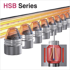 En la Serie HSB, el primer molde de soplado se calienta eléctricamente por encima de los 175°C y su forma es hasta un 20% más grande que el envase final. Después de completarse el soplado, el aire